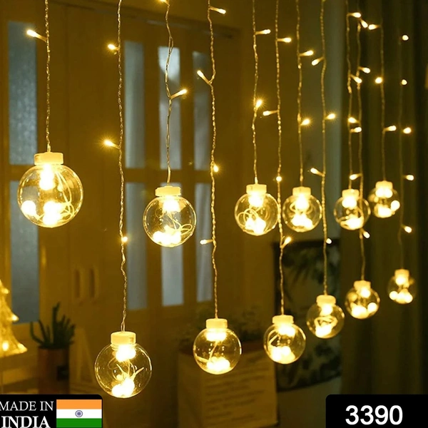 12 WISH BALLS WINDOW CURTAIN STRING LIGHTS WITH 8 FLASHING MODES DECORATION FOR HOME DECORATION, DIWALI & WEDDING LED CHRISTMAS LIGHT INDOOR AND OUTDOOR LIGHT ,FESTIVAL DECORATION (PLASTIC, WARM WHITE)